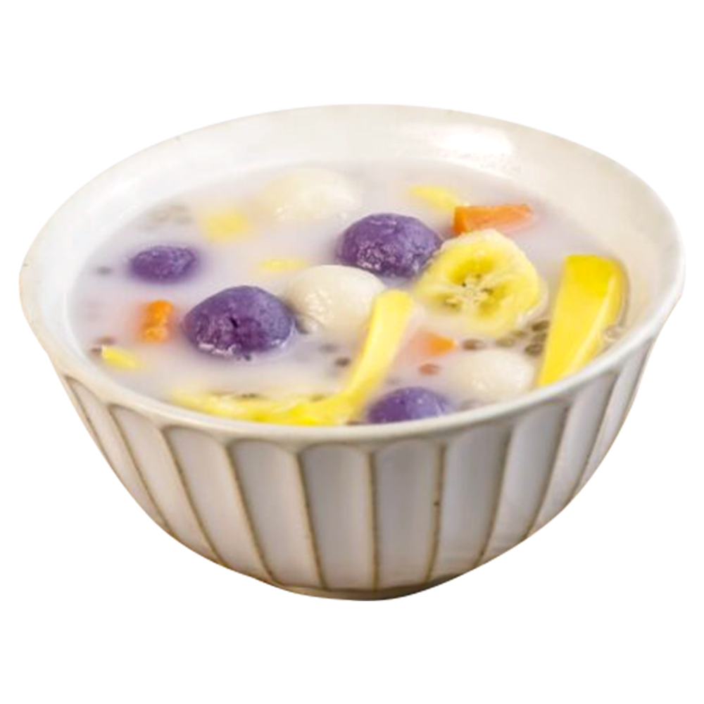 All time merienda served cold or warm. Made with glutinous rice balls, bananas, sweet potatoes and tapioca pearls that is cooked in sweet coconut milk, and jackfruit for that special flavorful taste